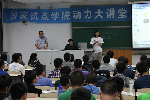 同学们积极向谭教授提出问题,问题涉及到了机器人、虚拟现实、计算机、无人机、出国留学等许多与时俱进的话题,谭教授详细的一一解答。与谭教授一同前来的他的三位学生也一同参与了回答问题。讲座最后,两位来自台湾的同学展示了他们的科技作品。两位学长分别介绍了他们作品的项目背景、原理、创新点,并以视频的方式展示他们的作品。