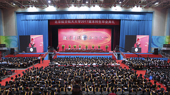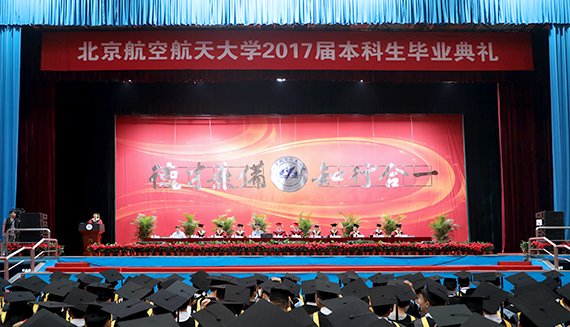 2017届本科生毕业典礼在北航体育馆隆重举行。校领导张军、徐惠彬、魏志敏、何新洲、程基伟、陶智、房建成、黄海军、李军锋、王云鹏,教师代表、电子信息工程永利娱乐城