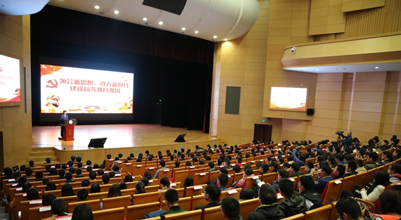 陈旭做了题为《领会新思想、进入新时代,建设高等教育强国》的报告。陈旭从亲历十九大的经历开始,围绕领会新思想、把握新时代、勇担新使命、奋发新作为等方面对党的十九大精神进行了全面、准确、透彻地宣讲,并紧密结合高等教育的实际,指出高校要充分发挥自身的科技优势和人才优势,主动投身创新型国家建设,把满足国家战略需要和引领国际学术前沿“两个战场”统一起来,着力解决经济社会发展面临的重大理论和现实问题,努力建设扎根中国大地的世界一流大学。