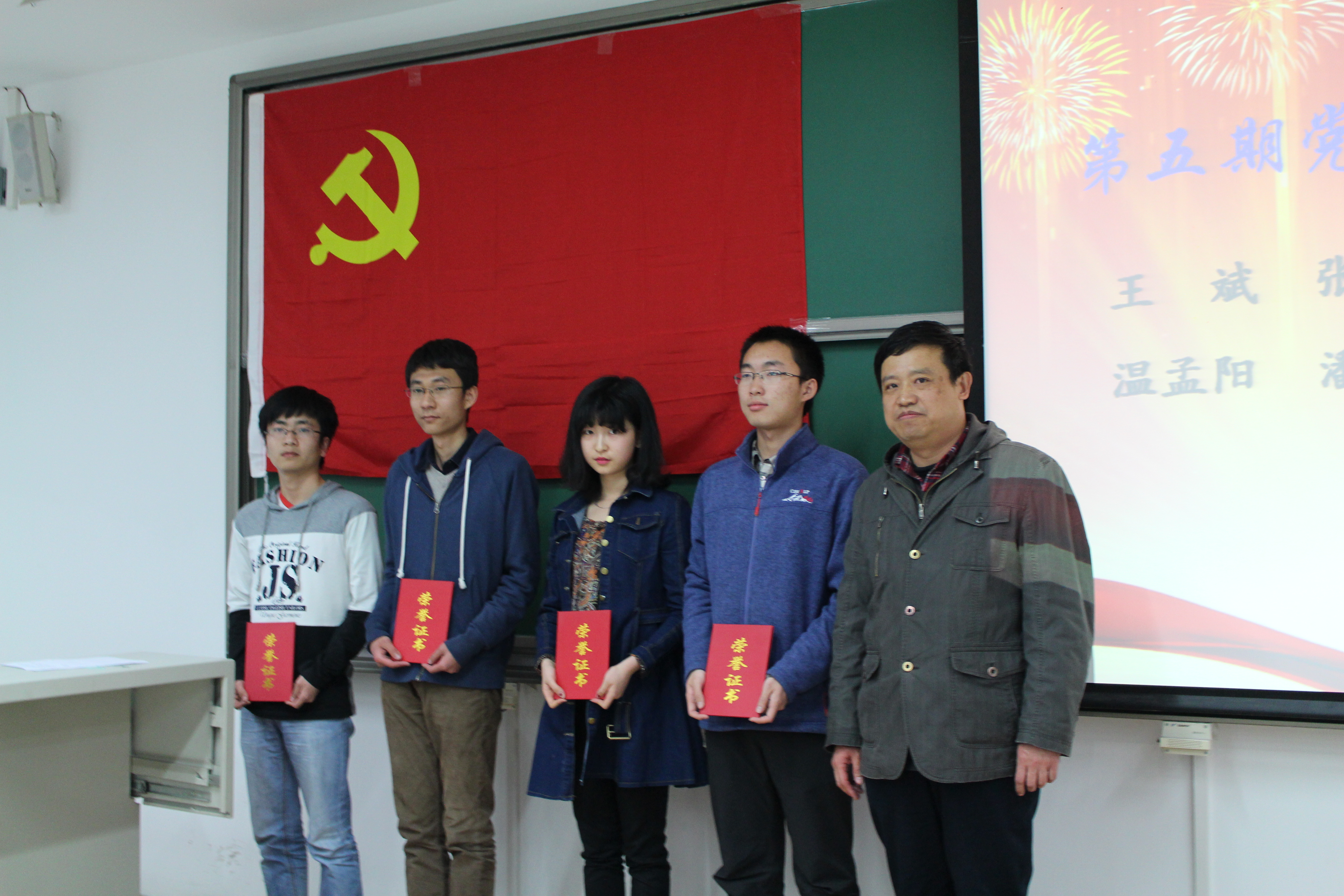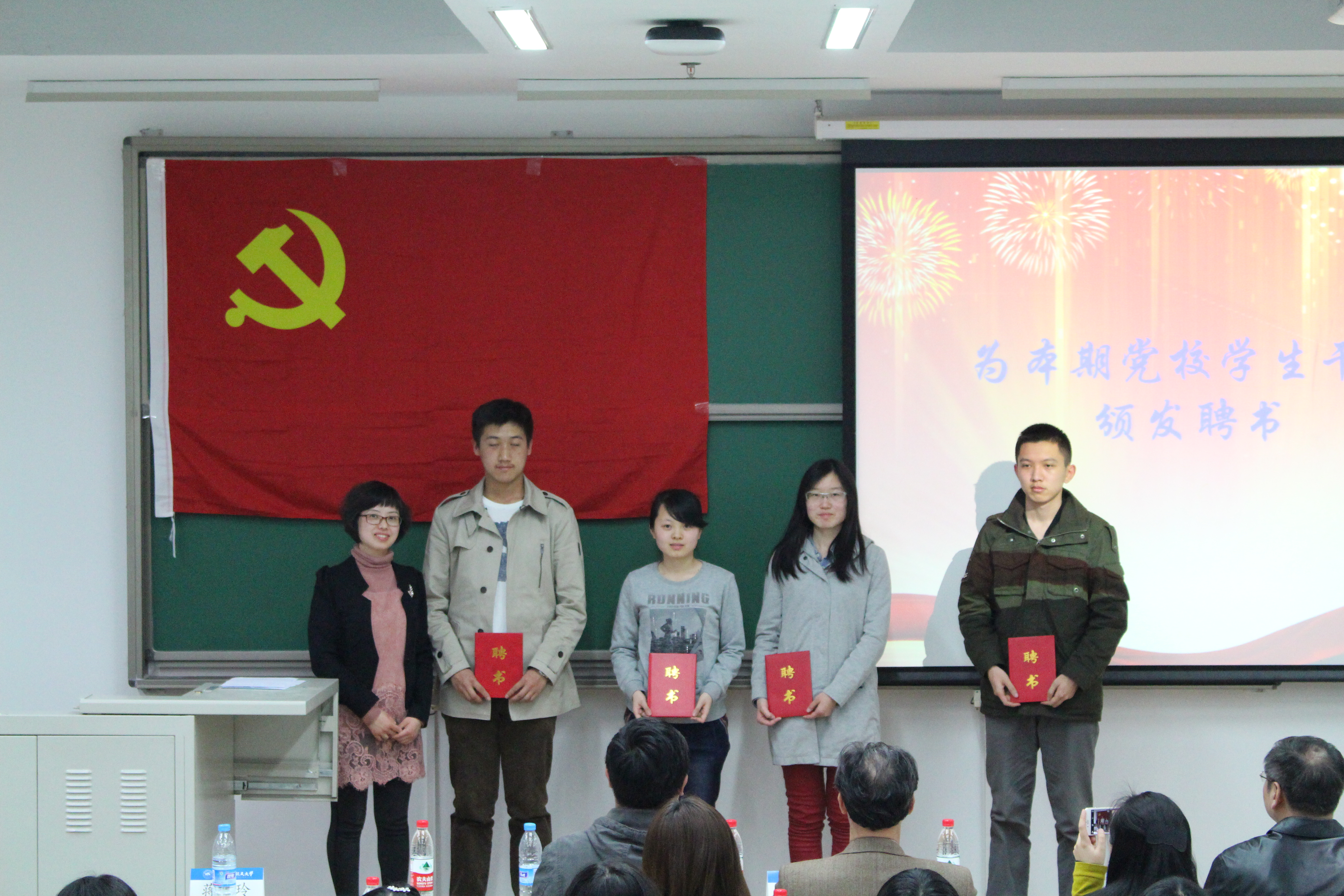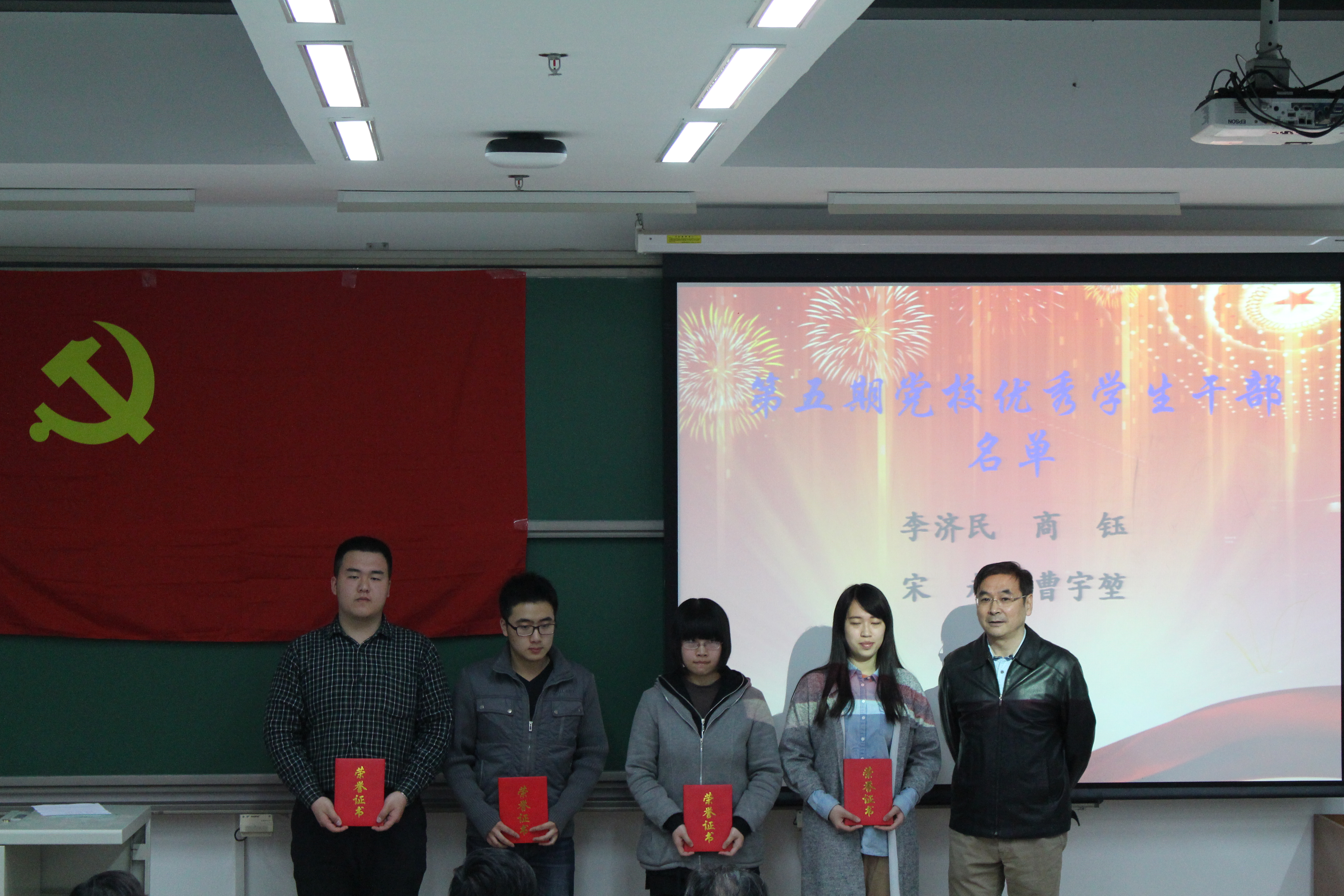 分团委书记董萍萍老师,第五期共建党校优秀学员代表,第五期共建党校优秀学生干部代表以及4、26、27系联合学生党校干部、全体学员。
