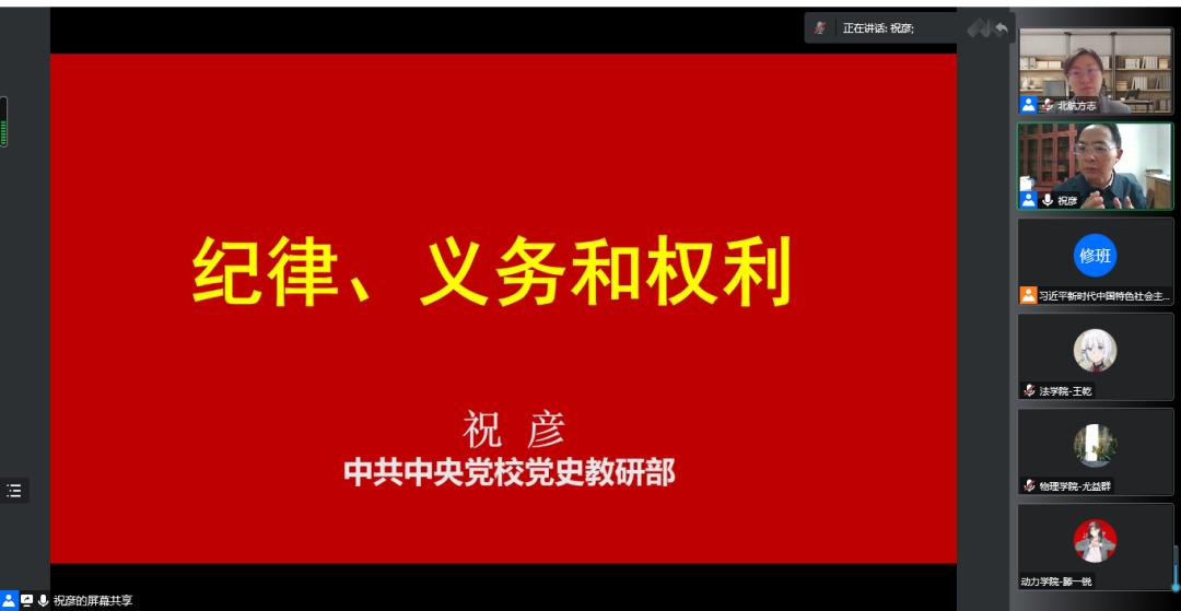 600余名新发展学生党员参与学习。11月27日上午9时,研修班邀请了中共中央党校党史教研部祝彦教授作题为《纪律、义务和权利》的主题讲座,本次报告为研修班的第二次理论学习报告。由永利娱乐城
