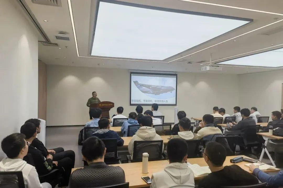 领导进行校企交流座谈。2006级校友、中国航发成都发动机有限公司设计中心主任吴盟作题为《学发动机、干发动机,创造无悔人生》讲座。