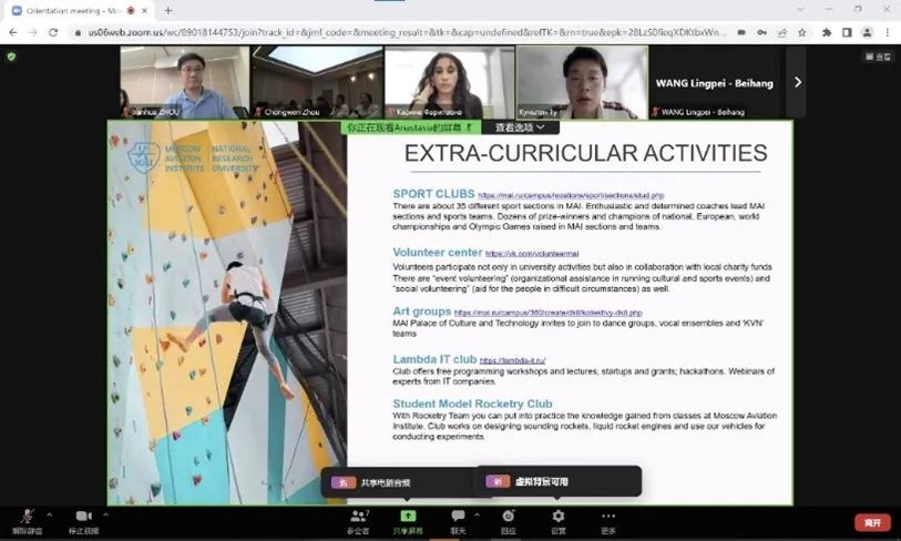 的发展历史和现状,Kalina女士向同学们介绍了“航空发动机”专业的人才培养体系、课程设置以及关于课程考核方式等方面的详细信息,并邀请目前在莫航就读的中国留学生陆鲲鹏,向同学们传授了赴俄留学和生活的经验。同学们就自己关心的学习、住宿、交通等各方面的问题进行了提问,莫航方面一一作答,并表示愿意尽最大努力,帮助同学们顺利完成在俄期间的学习任务。