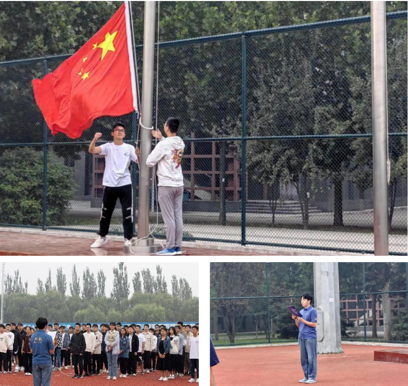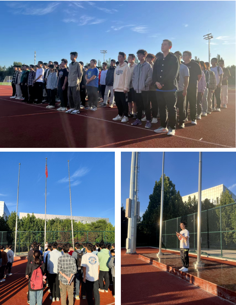 在奏响的国歌中,鲜艳的五星红旗迎着朝阳冉冉升起,与蓝天白云交相辉映。同学们昂首挺立,目光坚定,满怀对祖国的无限热爱和崇高敬意,“空天报国”的信念在心中更加坚定。