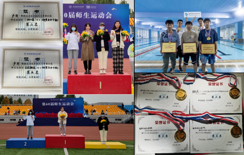 篮球赛,勇夺冠军;在北航羽毛球团体赛中获得沙河校区冠军。