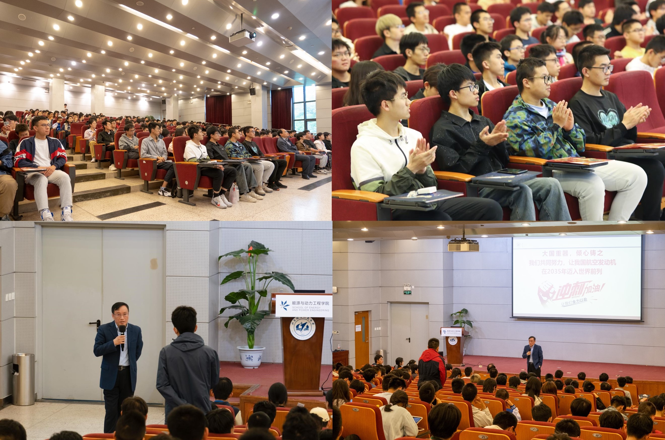 陶智院士从航空发动机的“七高特征”“四个挑战”讲起,介绍了航空发动机的战略意义,我国航空发动机发展的三个阶段,航空发动机人的奋斗历程,以及航空发动机的未来发展前景。在报告最后,陶智院士用“大国重器,倾心铸之”作为寄语,鼓励在场同学们加入到航空发动机研制的队伍中,共同铸造我国航空发动机事业的新篇章。