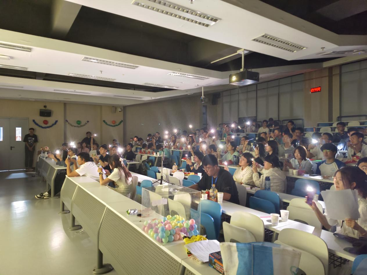 整场晚会气氛活跃欢快,精彩的歌舞表演展现了同学们青春昂扬的精神风貌,美好的祝福洋溢在同学心中的激情,击鼓传花、飞花令等趣味小游戏贯穿其中。