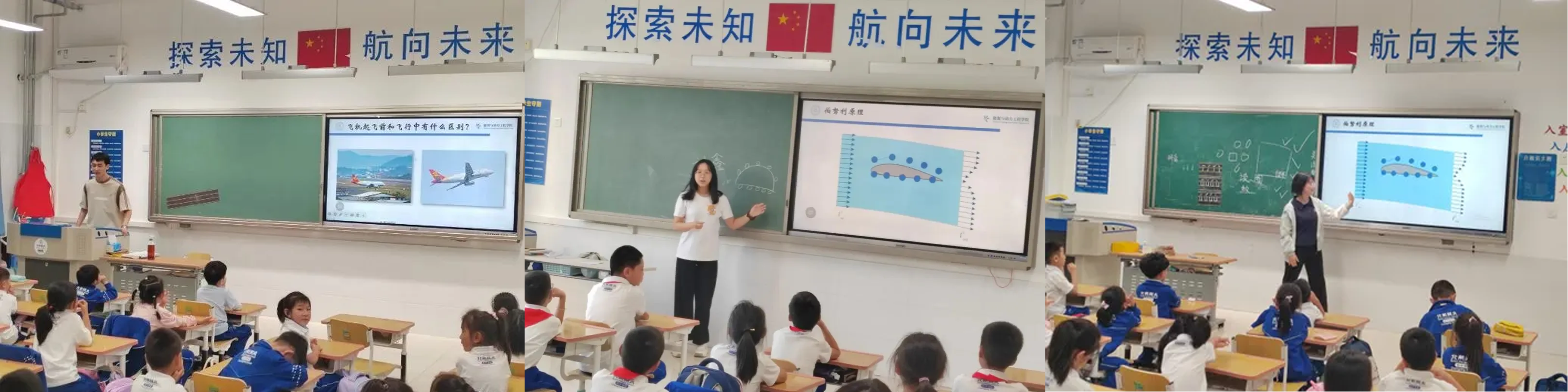 宣讲团的成员们作为北航学子,不仅拥有丰富的专业知识,更怀揣着对航空航天的无限热情。他们用自己的亲身所学和一个个生动案例,深入浅出地讲解了航空航天的相关专业知识及基本原理、发展历程、未来趋势。课程以知识科普为起始,空天梦想为导向,启航人生为目标,带领孩子们在知识的海洋中遨游的同时,也在他们心中埋下逐梦空天的种子。