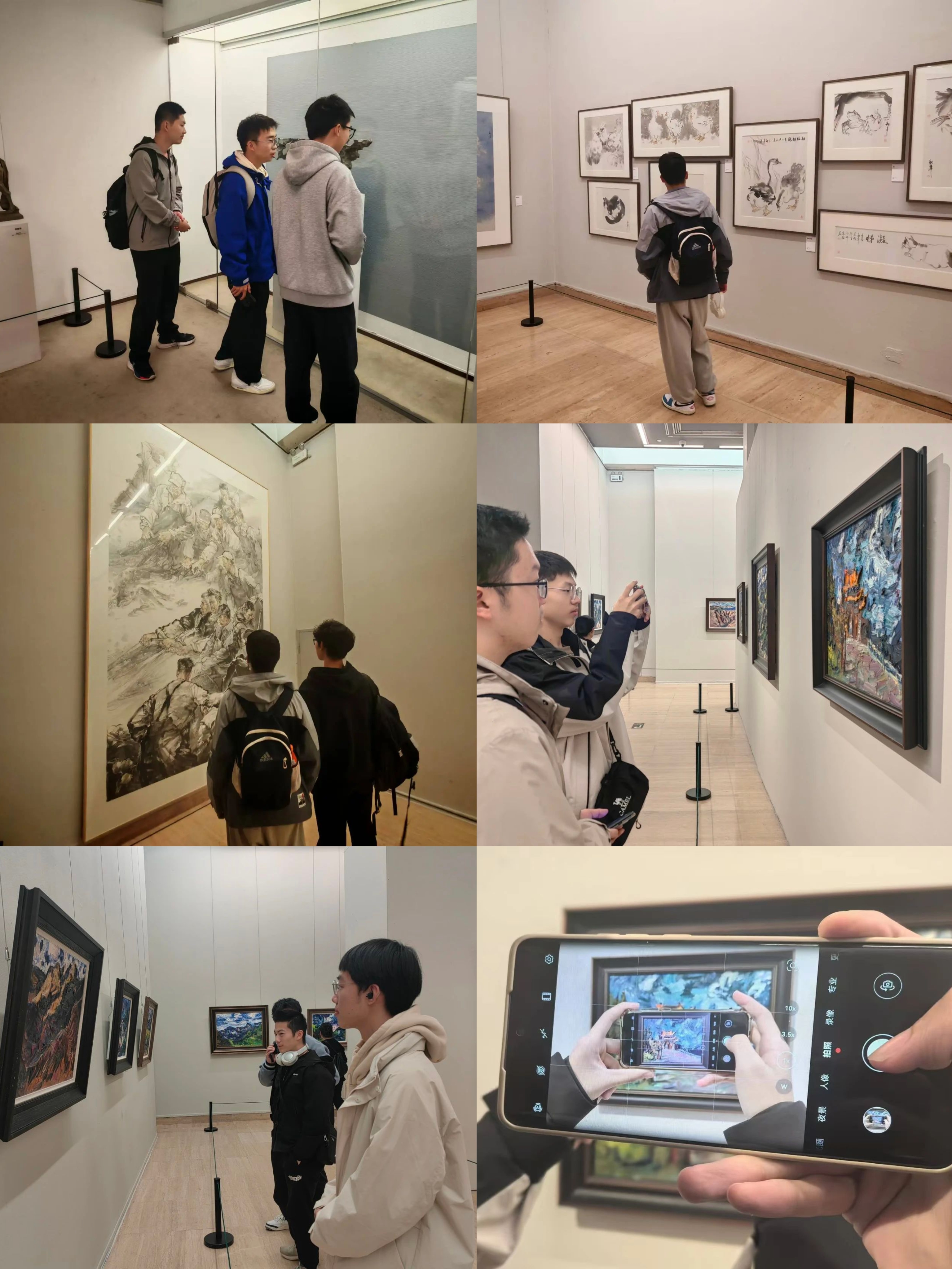 此次展览涵盖了油画、雕塑、书法等多种类型的艺术作品。同学们穿梭于各个展厅,在一幅幅精美的艺术作品前驻足观赏。从传统的国画到现代的油画,从栩栩如生的雕塑到别具一格的陶瓷。同学们或低声交流对作品的理解,或安静聆听讲解员的解读,沉浸在浓厚的艺术氛围中。