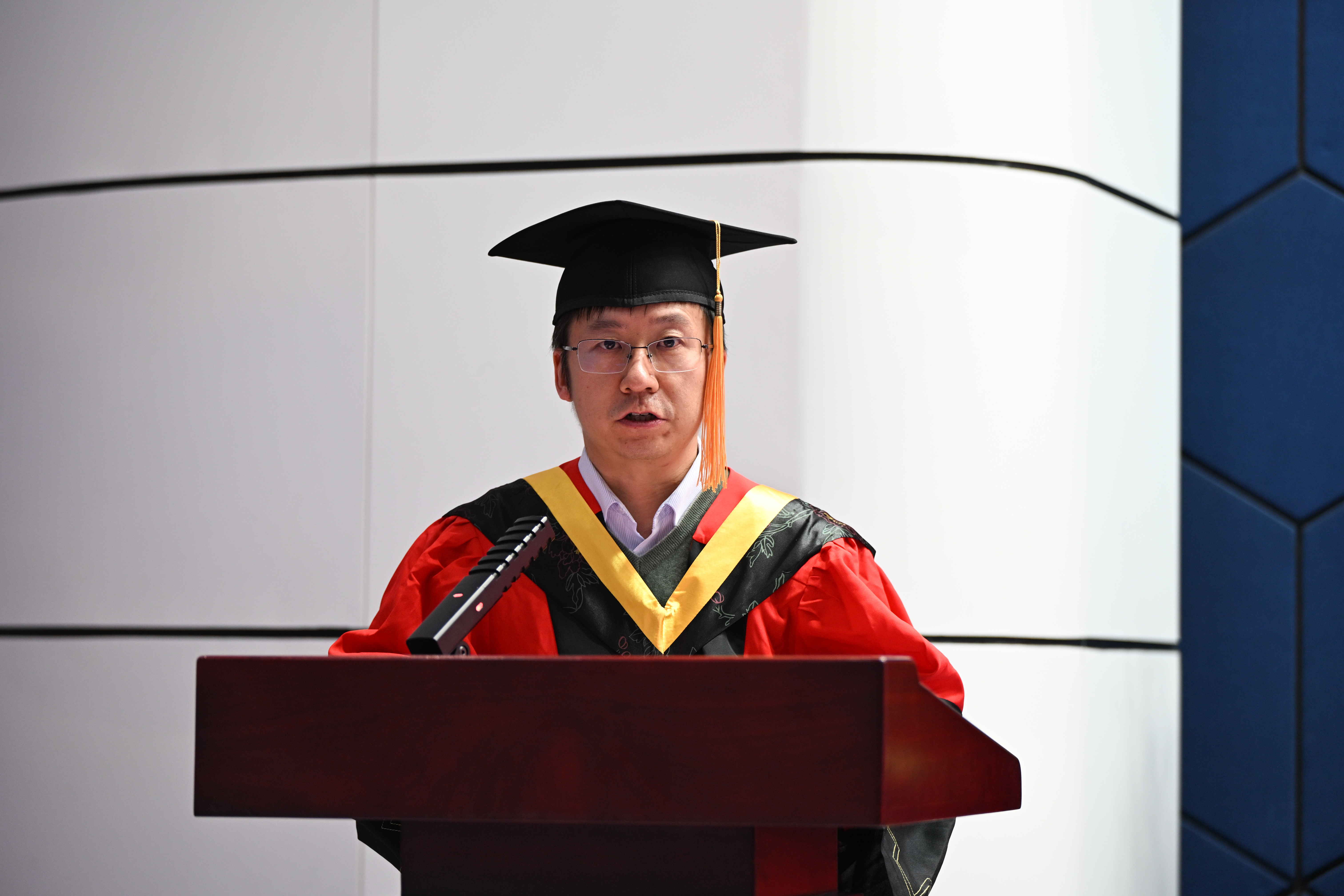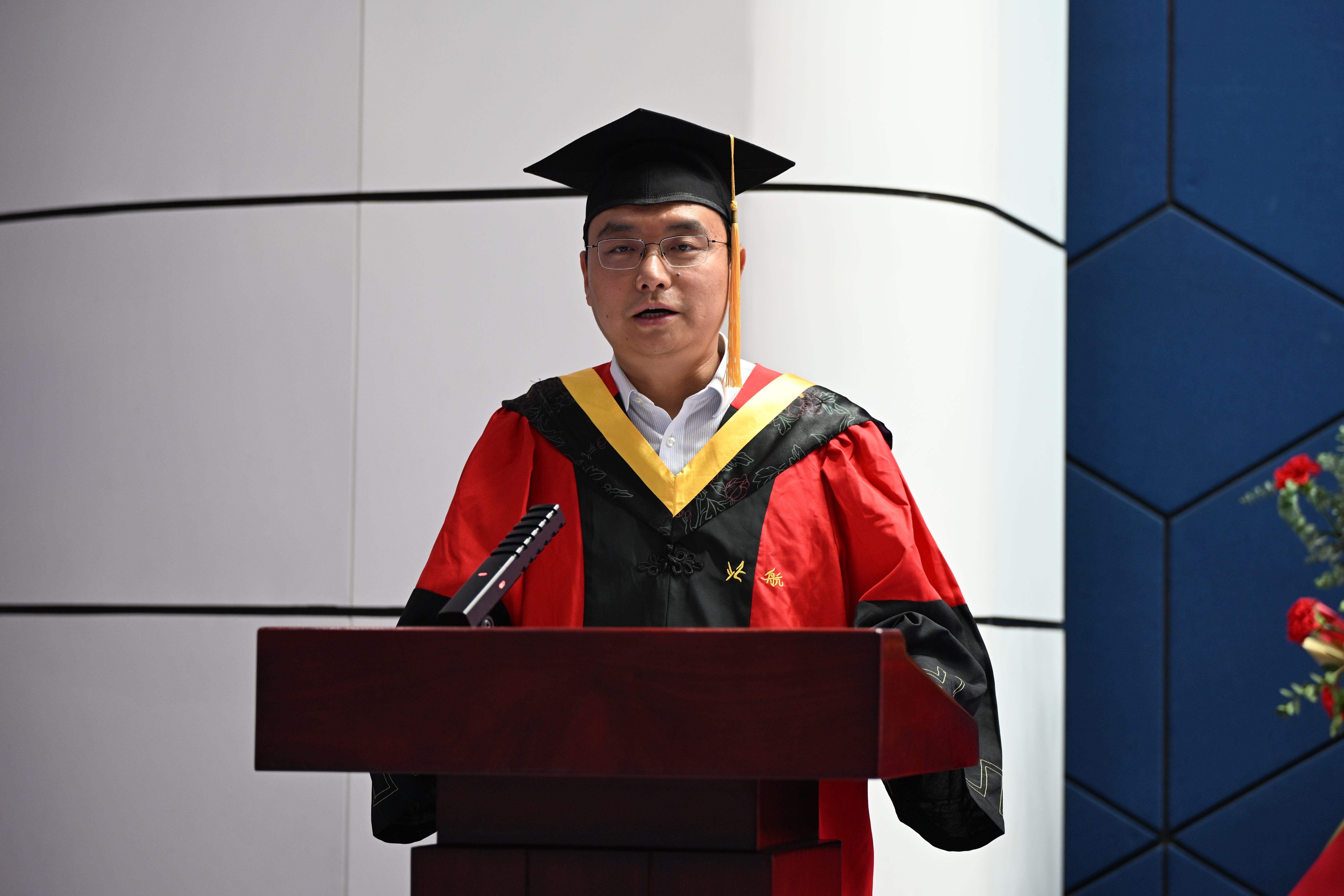 向顺利完成学业的硕士及博士毕业生表示热烈祝贺,向辛勤付出的研究生导师和教职员工致以衷心的感谢。他回顾了这几年动力学子与国同行所经历的大事,肯定了同学们勇敢追梦、全面发展。闫晓军提出三点希望与2025届研究生毕业生共勉:第一,爱党报国,从校史院史中汲取奋进力量。人生的理想各有不同,但胸怀“国之大者”,服务国之所需,无疑是最为高远的志向。第二,终身学习,从勇于实践中锤炼过硬本领。“学如逆水行舟,不进则退”,把勤奋学习作为价值追求和人生态度。第三,团结拼搏,在凝聚力量中开创美好未来。“独行者速,众行者远”,希望大家传承好北航人团结拼搏的光荣传统,争做团结拼搏的奋斗者。