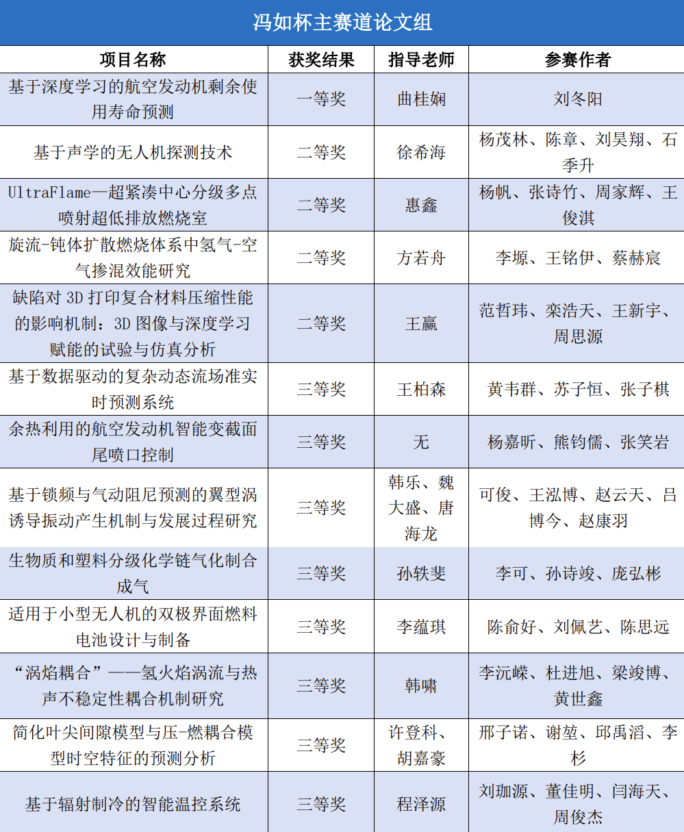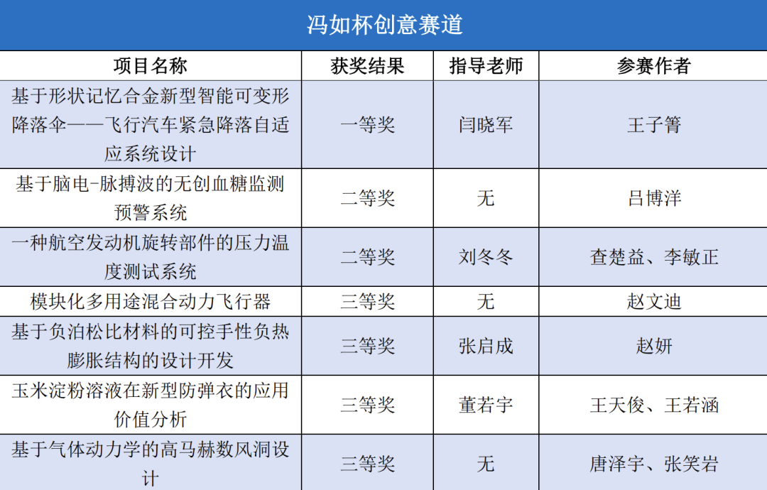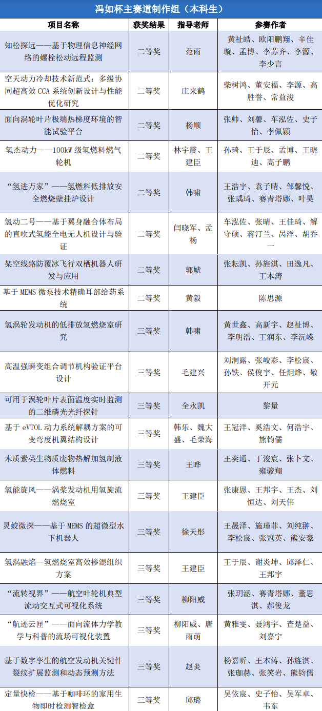学子共有159个项目参加本届“冯如杯”的激烈角逐并斩获优异成绩。主赛道本科生制作组二等奖8项、三等奖12项,主赛道本科生论文组一等奖1项、二等奖4项、三等奖8项,主赛道研究生制作组三等奖2项,红旅赛道铜奖1项,创意赛道一等奖1项、二等奖3项、三等奖4项。