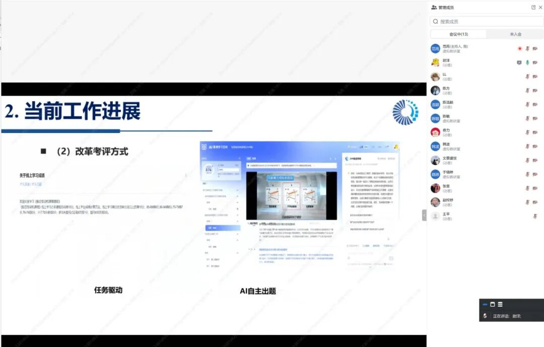 、西北工业大学、国防科技大学、空军工程大学等 20 余所高校及科研院所的项目团队参与此次评审。会议对数十个教改项目进行了中期评估,重点聚焦虚实融合、AI技术应用和课程思政创新。