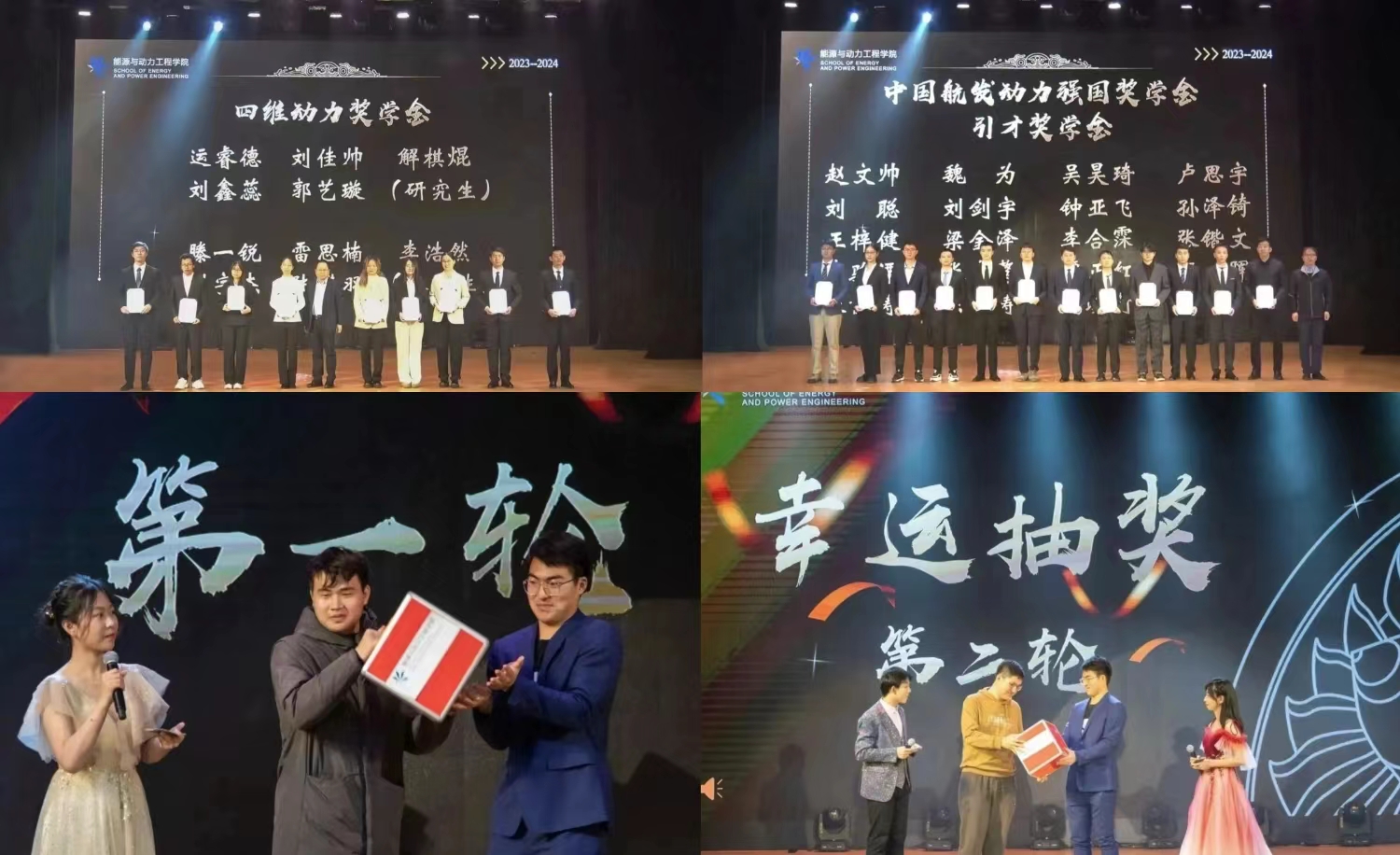 党委副书记谷萌为中国航发动力强国奖学金引才奖学金获奖同学颁奖。颁奖仪式后,同学们进行了“金鸡独立”、听歌识曲、抽奖等游戏互动环节。