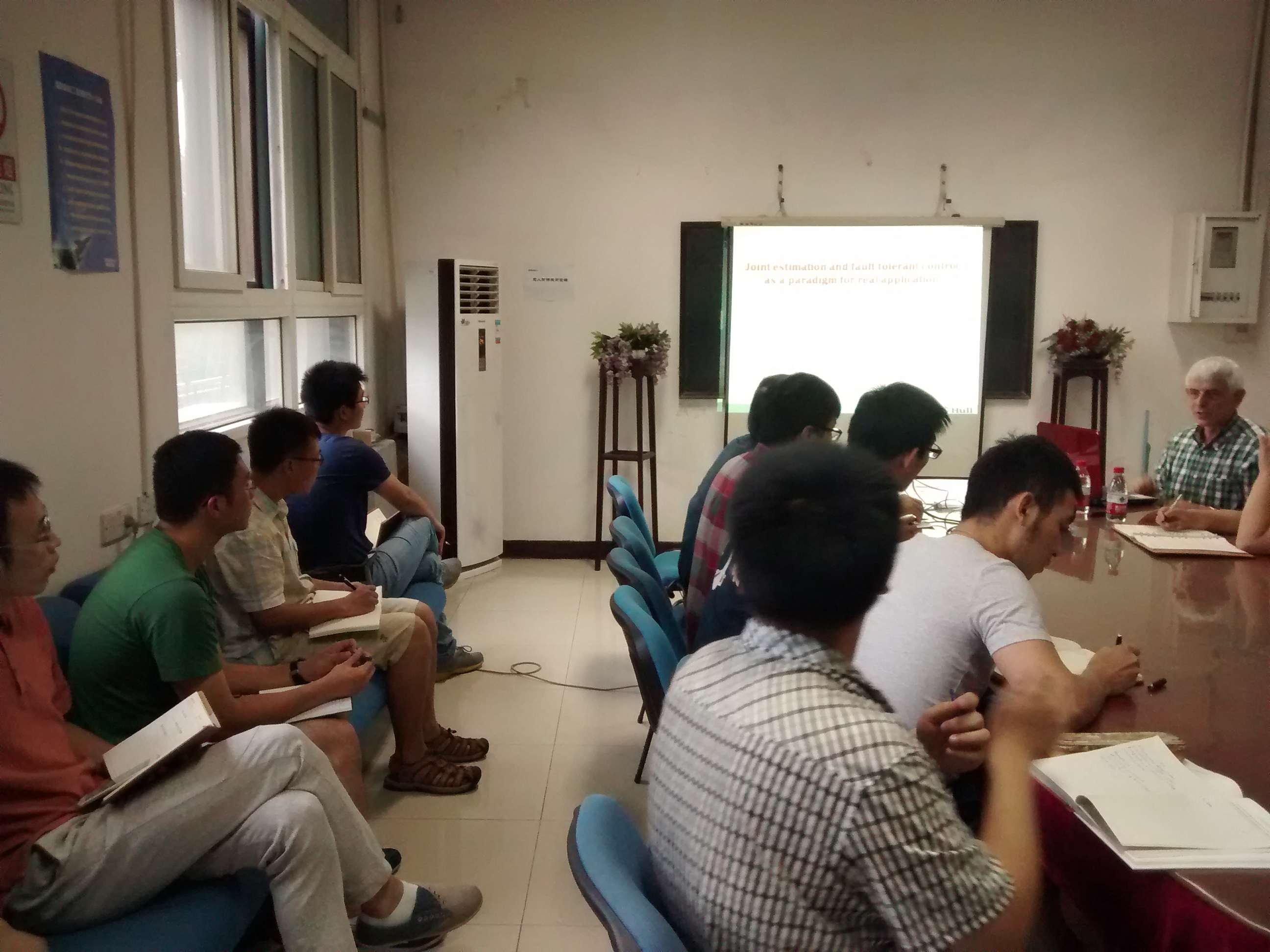 在当天的报告会上,Patton教授以《Joint estimation and fault tolerant control as a paradigm for real application》为题,作了近3个小时的学术报告,以故障诊断和容错控制的应用实例为切入点,为永利娱乐城师生介绍了将优秀的容错控制性能和鲁棒设计相结合的设计过程,详细描述了故障诊断和容错控制的工程应用及未来的发展前景。报告内容深入浅出,在场师生认真聆听了学术报告,并积极地与Patton教授进行了关于各个专业领域里容错控制问题的学术讨论。其间,参会的研究生同学积极提问,Patton教授耐心回答同学们提出的各种问题,并语重心长的提醒现场的师生,不能纸上谈兵,要把学术问题放在实际应用中。在座师生被Patton教授幽默的谈吐风格、深厚的专业素养和广阔的专业视角所深深折服,并受益匪浅。