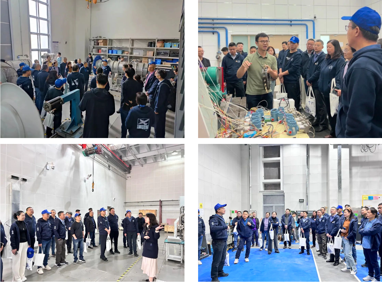 的流体与声学工程实验室、旋转盘腔实验室、双轴双涵对转跨声速紧凑压缩系统实验室和压气机低速模拟实验室,并与同学们热情交流讨论。