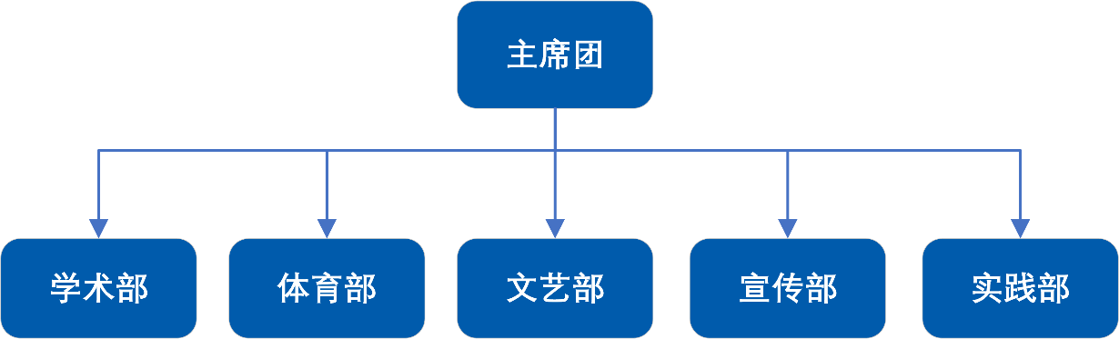 考虑研究生培养模式的特殊性,研究生会主要设置主席团,学习部、体育部、文艺部、宣传部、实践部五个部门,共同协作完成各项工作。