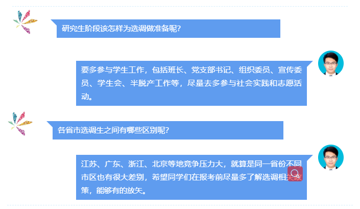 同时他还介绍了几个省份的选调政策和报考要点,指出应充分了解各省后再选择报考省市。他指出选调考试是为全面考察考生的综合能力,想考选调生的同学要尽量多参加学生工作,这样才能在简历筛选和面试时占据优势。